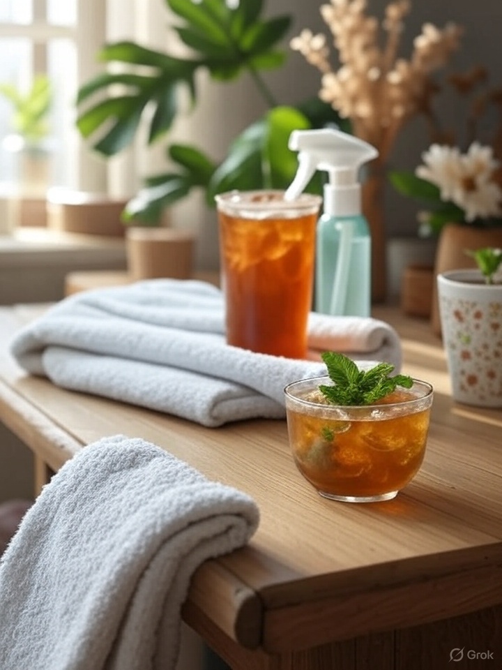夏のエアコンで肌が乾燥しちゃうなら、5分でできる自家製ミストが効果的だよ。スプレーボトルに水と少量のグリセリン(またはアロエジェル)を混ぜて、顔にシュッと吹きかけるだけ。最初は「こんな簡単なもので?」と思ったけど、5分で肌が潤ってくすみが薄れた気がしたの。友達に「最近肌がきれいになったね」って言われたのが励みになったよ。